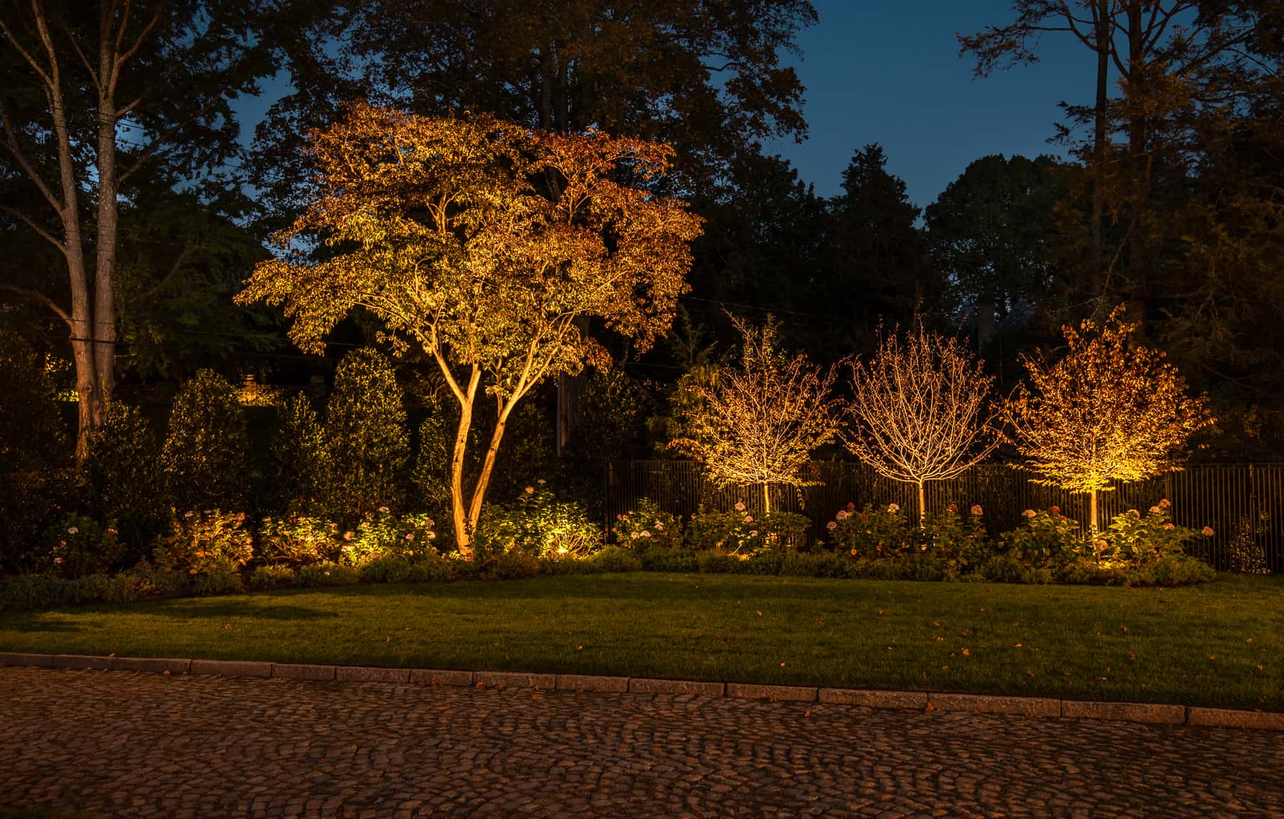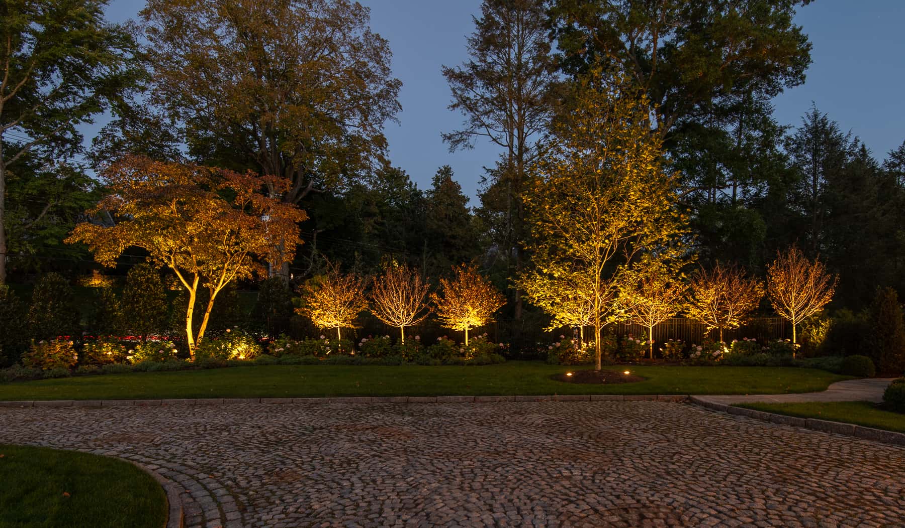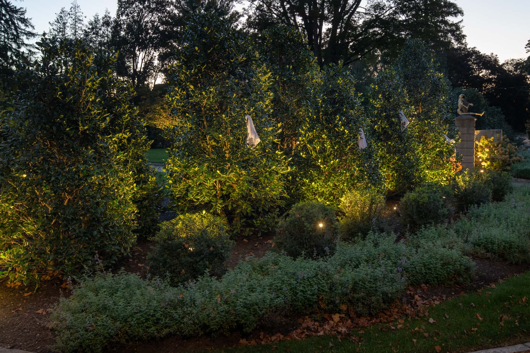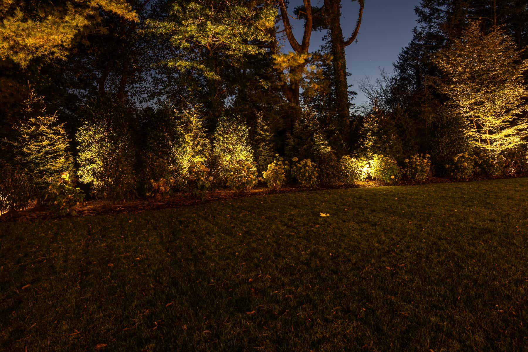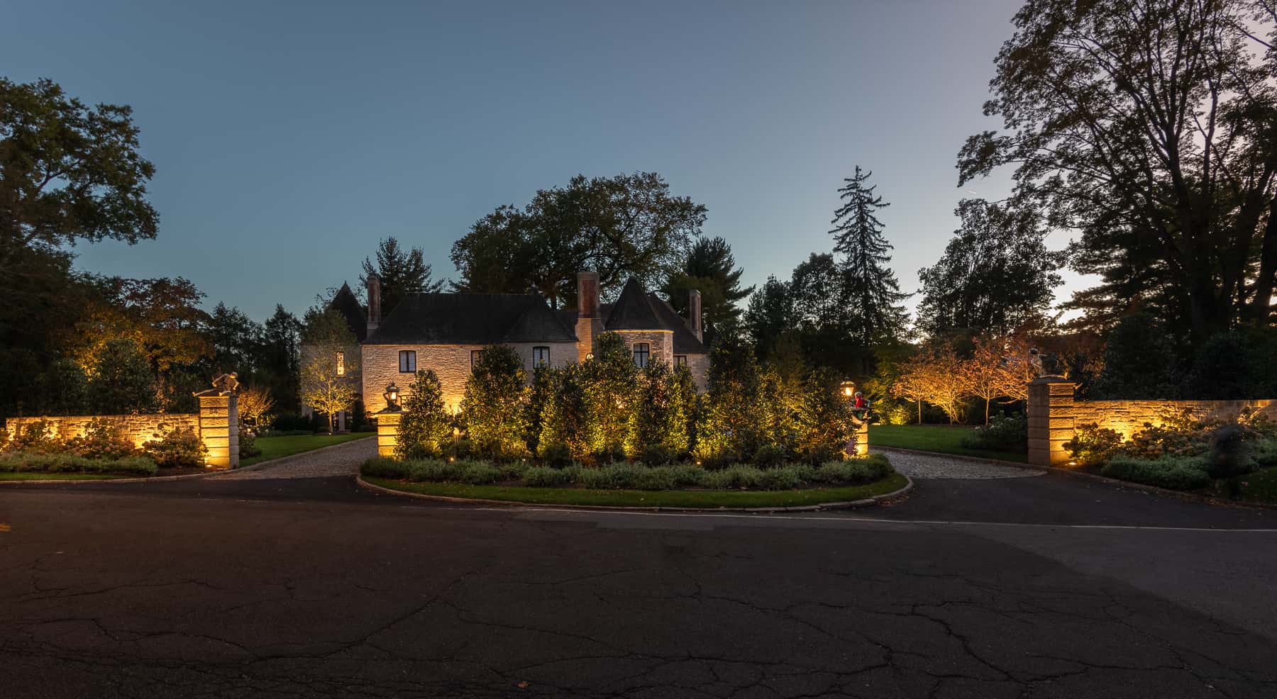 In order to design the landscape lighting for this French Provincial estate, the primary focus was on creating a warm and inviting nighttime atmosphere that complements the home’s architectural character. A key consideration throughout the process was whether the lighting should simply follow the property’s natural appearance or introduce new visual scenes after dark.